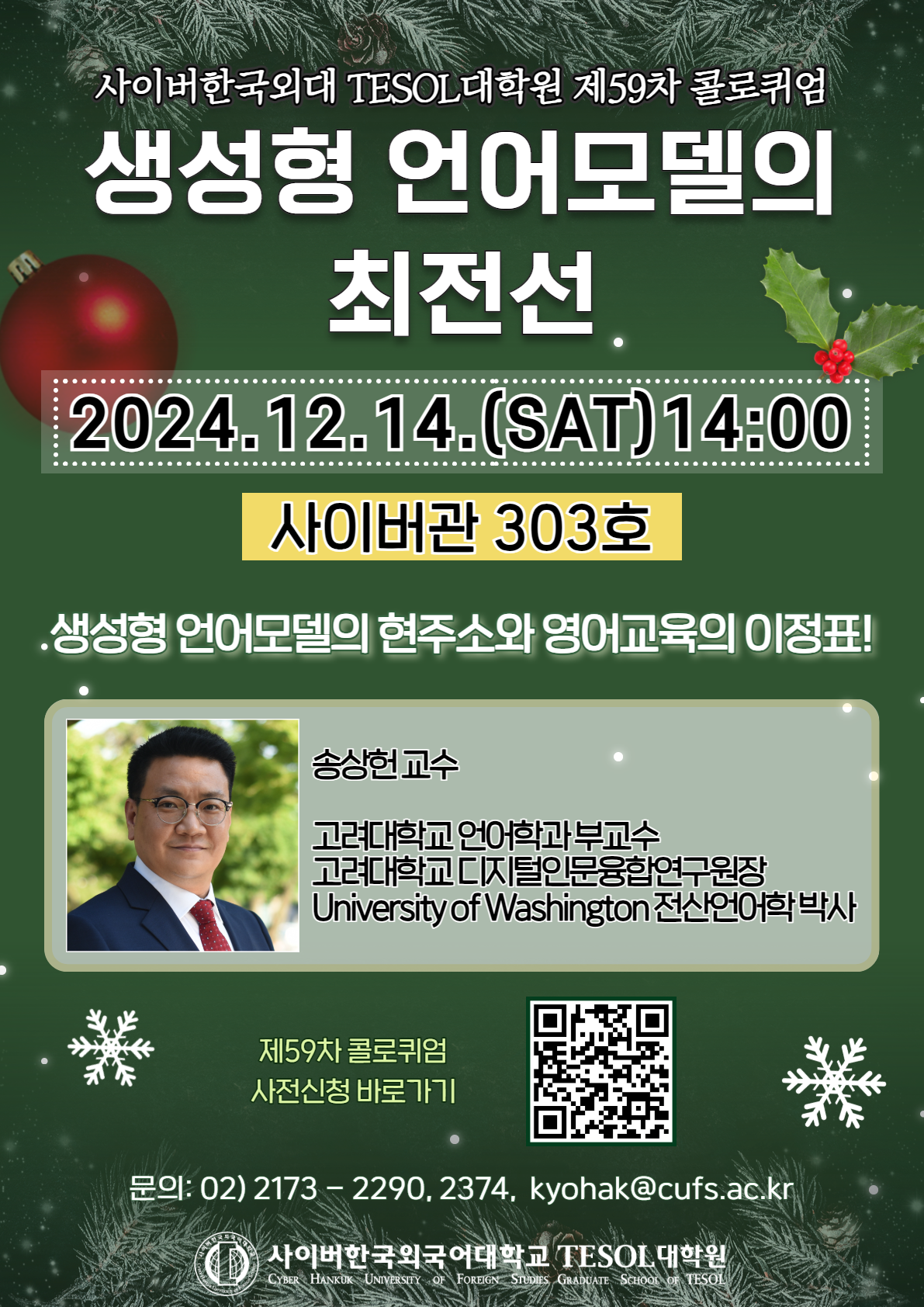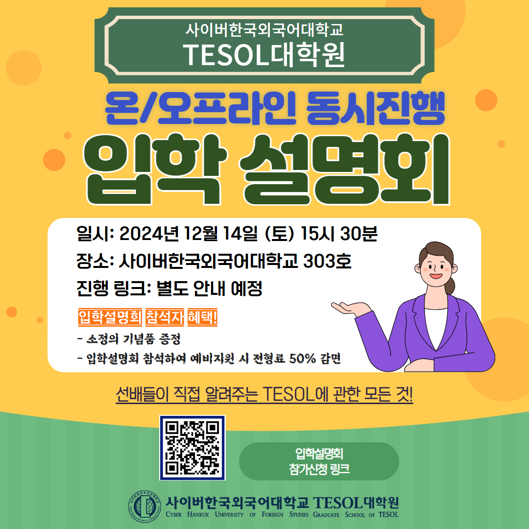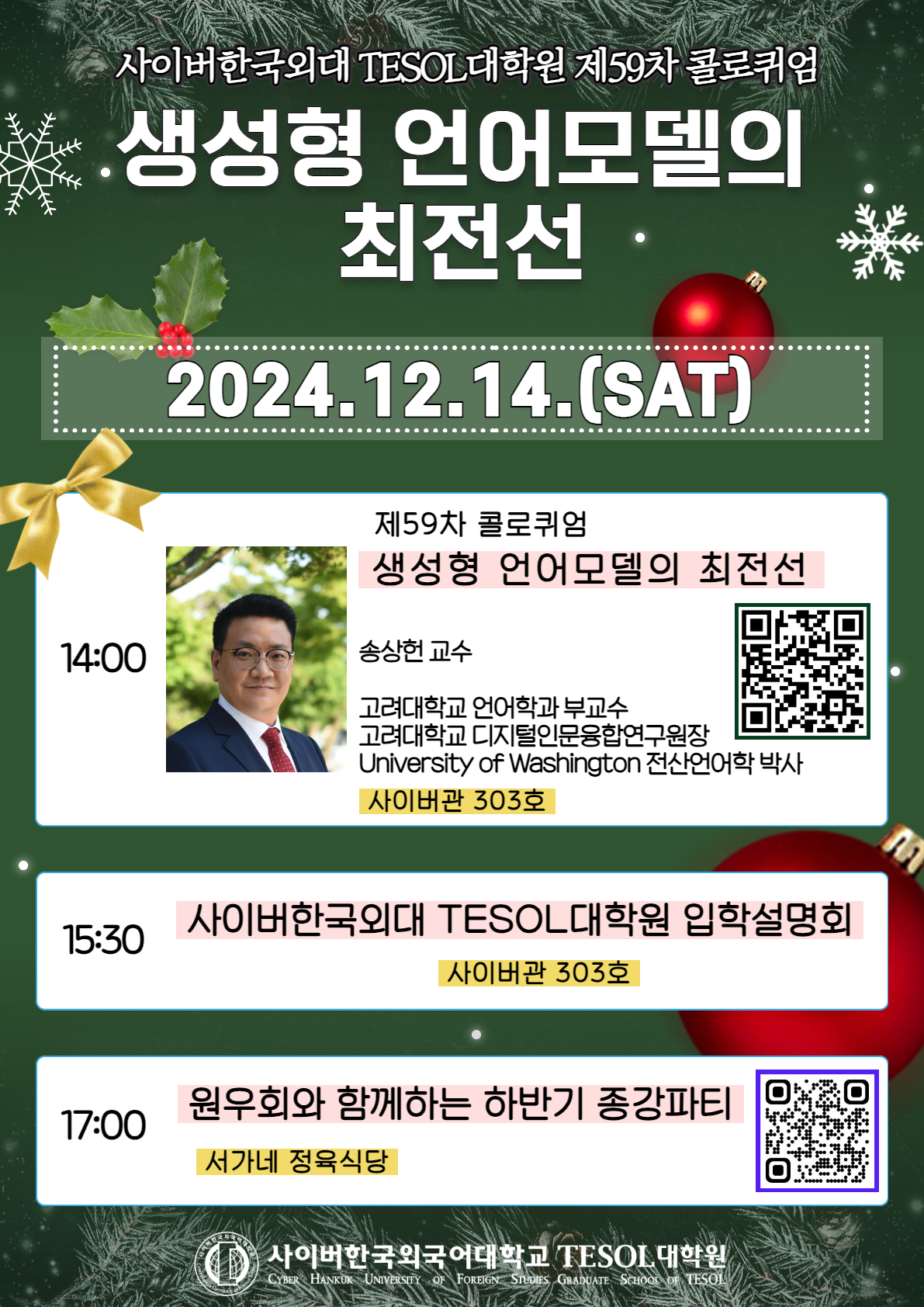 12월 14일(토) 오후2시 - TESOL대학원 제59차 콜로퀴엄 및 2025-1학기 입학설명회 안내(오프라인)