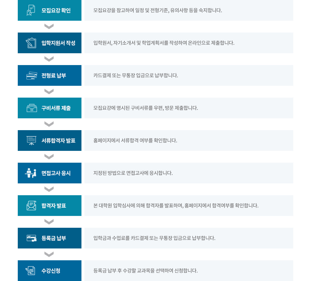 모집요강 확인: 모집요강을 참고하여 일정 및 전형기준, 유의사항 등을 숙지합니다.